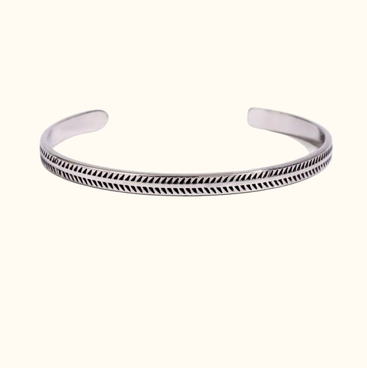 The Seraphina bracelet exudes an air of graceful sophistication, featuring an intricate chevron pattern that dances along its surface. This exquisite piece combines modern artistry with timeless elegance, making it a perfect jewelry for any occasion. Its open cuff design ensures a comfortable fit, allowing it to shine beautifully whether paired with casual wear or evening attire. Adorn yourself with the Seraphina bracelet, a true embodiment of refined beauty.
